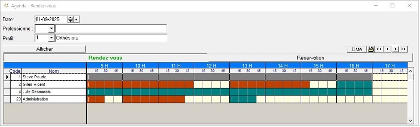 - Écran de saisie des rendez-vous et réservations